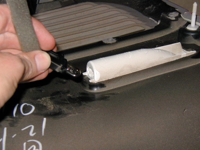 Photo 8 Gently pull the courtesy lamp from its' holder. Now the door panel can be removed from the door frame. |
