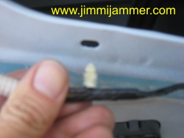 Photos 11 & 11a If your vehicle has a wire bundle clipped to the channel bracket, you will need to disconnect the wires from the channel. They are snap clipped to the channel bracket and door skin with simple push-in clips. Use a flat screwdriver to pry the snap clips out of the metal holes they are in. Be careful not to damage the wires. Photo 11 shows the clip on the door skin, outside the door cavity. Photo 11a shows the clip inside the door cavity. This is fastened to the window channel holding bracket. This photo shows after it was released from the bracket. When the wires are released (if present,) and the channel bolt is removed, the window channel should be able to slide straight down and come away from the upper channel. Tip: When it comes time to put the channel back in, start by sliding the upper end over the window edge. Then, with the channel vertical, gently slide the lower channel upward and be sure the clip snaps back onto the upper channel. This is easy to do as long as you know how the channels fit together, which you can do by feel. |